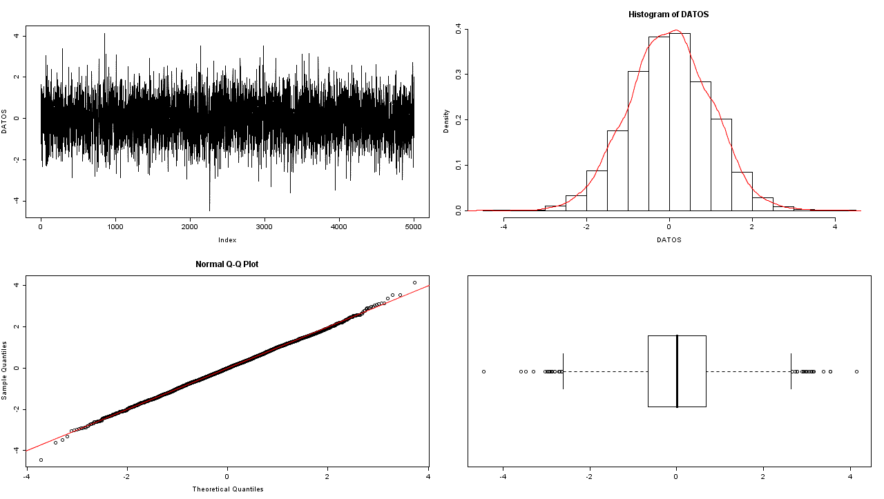 If you notice, the sales are asymetric. Data fails different tests for normality. NORMAL_SAMPLE <- rnorm(5000); JAB.PREDICTION.EDA(NORMAL_SAMPLE); JAB.PREDICTION.EDA_TABLE(NORMAL_SAMPLE); JAB.PREDICTION.NORMAL_TESTS(NORMAL_SAMPLE);